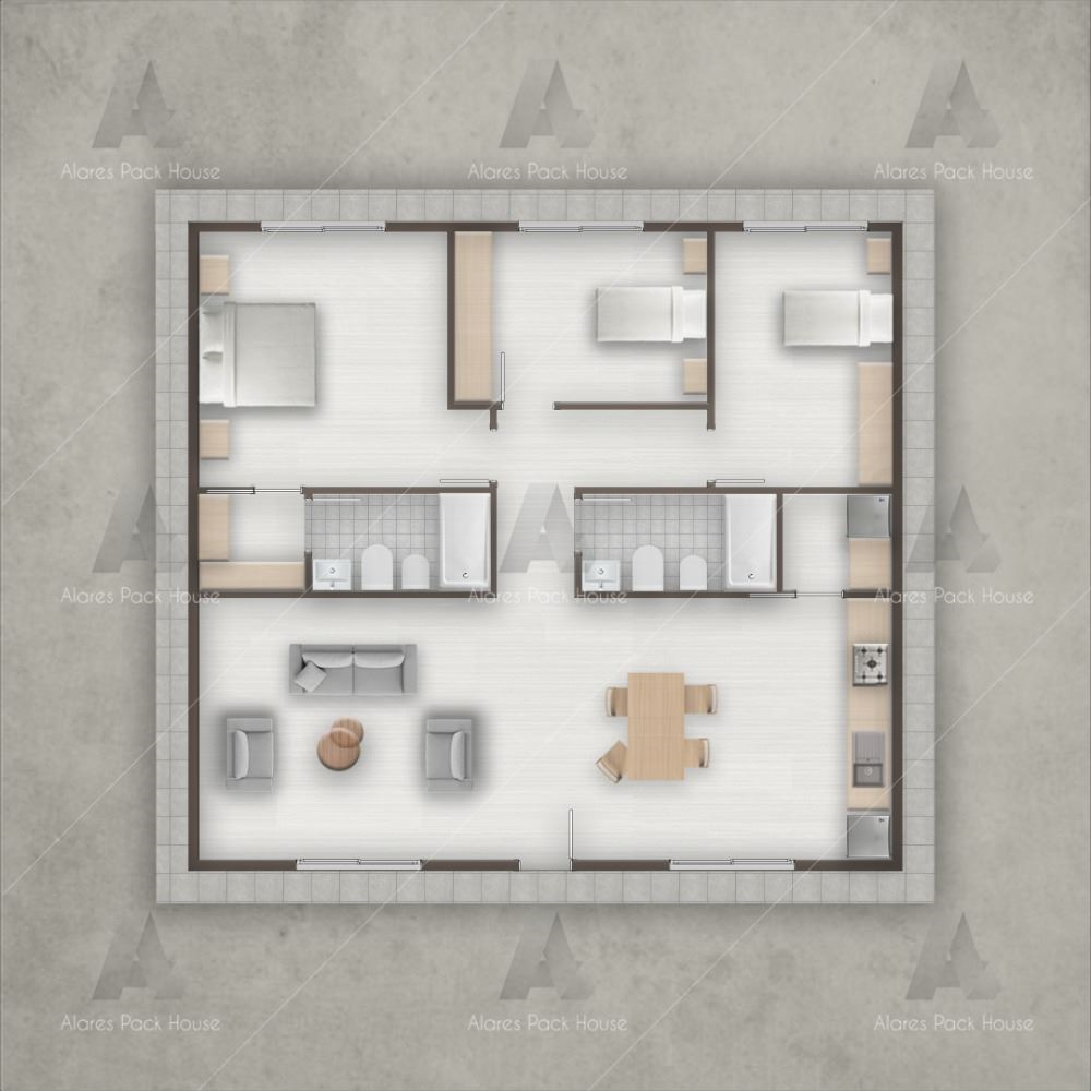 Kit formado por perfilar铆a estructural para montaje de paneles portantes de entramado ligero (Steel frame), cuyos elementos principales en fachada y tabiques interiores son perfiles de聽C 89 x 41 x 1.2 mm y en cubierta C 200 X 51 X 1.5.聽Acero conformado en fr铆o SG280 Z310.